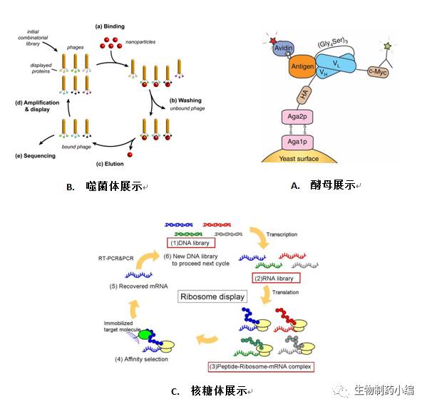 基于庫(kù)的抗體親和力成熟與基于庫(kù)的抗體初步篩選涉及的方法基本相同,主要是利用噬菌體展示、酵母展示、核糖體展示等系統(tǒng)。