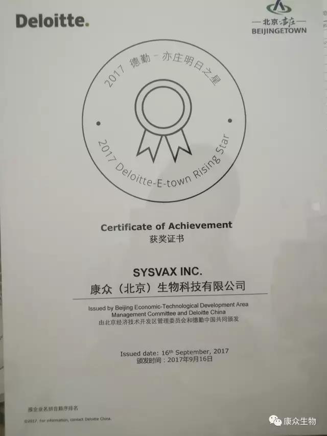 會上,德勤-亦莊高科技高成長企業(yè)20強,明日之星同時頒布,康眾(北京)生物科技有限公司被評選為“德勤-亦莊明日之星”!康眾生物能夠獲此殊榮,意味著北京經(jīng)濟技術(shù)開發(fā)區(qū)政府對康眾生物的充分肯定與支持,也標(biāo)示著開發(fā)區(qū)政府對康眾生物未來發(fā)展的信心與鼓勵。