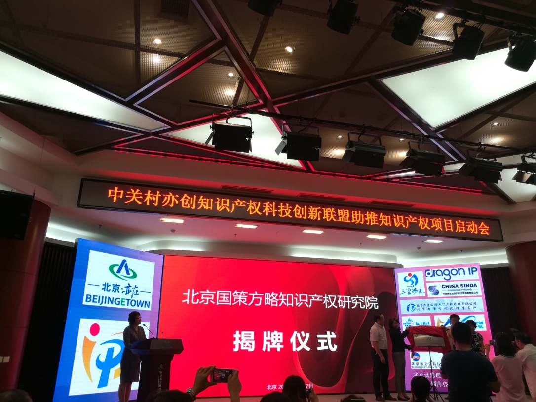 會議進行第三階段,舉行了北京國策方略知識產(chǎn)權(quán)研究院揭牌儀式并且院長發(fā)表講話。北京國策方略知識產(chǎn)權(quán)研究院是由北京市知識產(chǎn)權(quán)局作為業(yè)務主管單位,經(jīng)北京市民政局批準成立的民辦非企業(yè)的非營利性社會組織。研究院的宗旨是“服務企業(yè)創(chuàng)新發(fā)展,聚集知識產(chǎn)權(quán)資源,構(gòu)建保護服務體系,建立知識產(chǎn)權(quán)投融資新模式、打造知識產(chǎn)權(quán)支撐創(chuàng)新技術(shù)產(chǎn)業(yè)化服務新鏈條”。