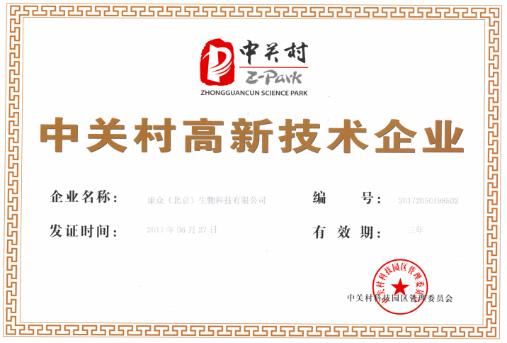 2017年6月27日,康眾(北京)生物科技有限公司榮獲中關(guān)村高新技術(shù)企業(yè)稱號。康眾生物主要致力于傳染病疫苗及惡性腫瘤抗體藥物研制??当娚飸{借極強(qiáng)的研發(fā)能力,自主研發(fā)的創(chuàng)新工藝,持續(xù)進(jìn)行研究開發(fā),形成了企業(yè)核心自主知識產(chǎn)權(quán)和領(lǐng)先技術(shù)平臺,被中關(guān)村科技園區(qū)管理委員會評審為“中關(guān)村高新技術(shù)企業(yè)”。此項(xiàng)資質(zhì)是對康眾生物的相關(guān)技術(shù)研發(fā)實(shí)力及企業(yè)健康可持續(xù)發(fā)展的高度認(rèn)可。